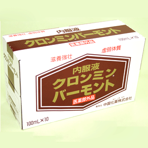 【ドリンク名称】 内服液クロンミンバーモント2 【成分・分量】 本品1日量(100mL)中 リボフラビンリン酸エステルナトリウム3mg ピリドキシン塩酸塩10mg ニコチン酸アミド60mg 無水カフェイン50mg カルニチン塩化物100mg イノシトール100mg グルクロノラクトン1000mg ショウキョウ流エキス0.1mL タイソウ流エキス0.075mL 「アルコール0.2mL以下」 添加物:白糖、ハチミツ、転化型液糖(白糖・果糖・ブドウ糖)、クエン酸水和物、クエン酸ナトリウム水和物、酒石酸、DL-リンゴ酸、安息香酸ナトリウム、パラベン、香料、グリセリン、プロピレングリコール、バニリン、I-メントール、ビタミンEを含有する。